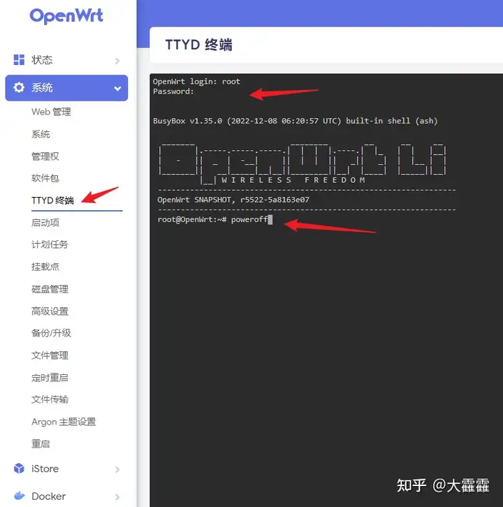 利用ssh软件登录到cli界面(或者使用网页TTYD终端)