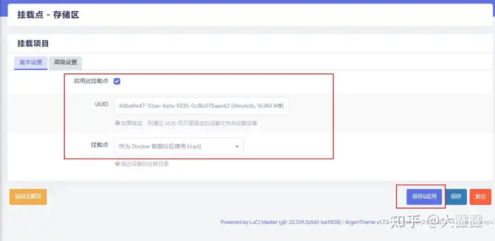 同样是启用,UUID,但这次是作为”Docker数据分区使用“