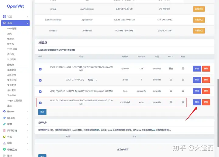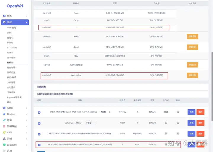 然后进入OpenWrt网页,在挂载点那里生成配置