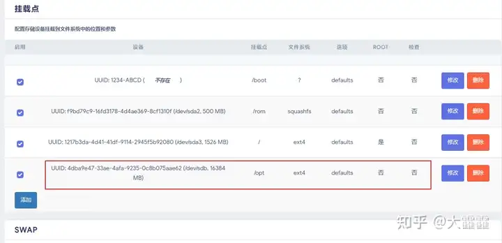 如果你的新硬盘重启后没有自动挂载到opt,请编辑”/etc/rc.local“文件
