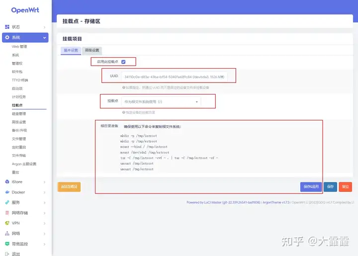 启用此挂载点,根据UUID,作为根文件系统,保存应用